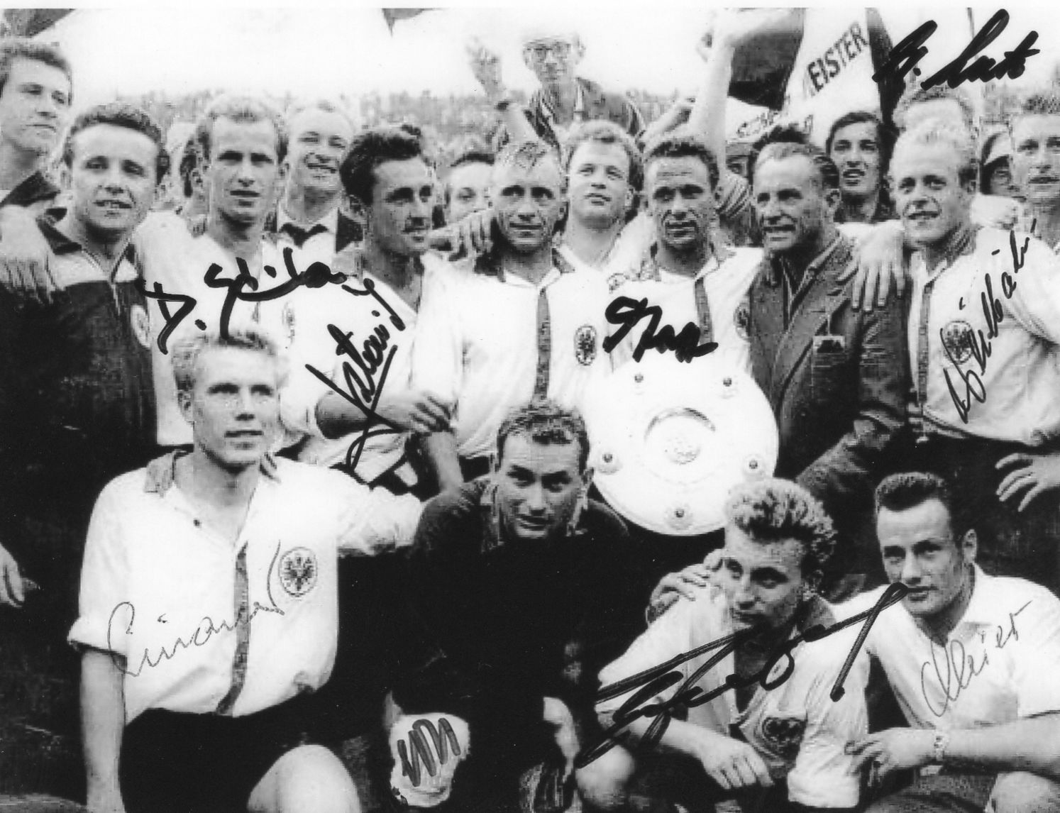 Mit dem Zug geht es an den Hauptbahnhof, wo den Spielern erst richtig bewusst wird, was seit gestern in Frankfurt los ist. Die ganze Stadt ist auf den Beinen um ihre Sieger zu feiern. „Dann treten die Spieler hinaus auf den Bahnhofsvorplatz, und alle Vorstellungen, die sie seit Berlin mit sich trugen, stürzten zusammen. Dort auf dem Riesenplatz wartete eine Menge, man konnte nicht sagen, wie viele Tausende es wohl gewesen sein mögen.